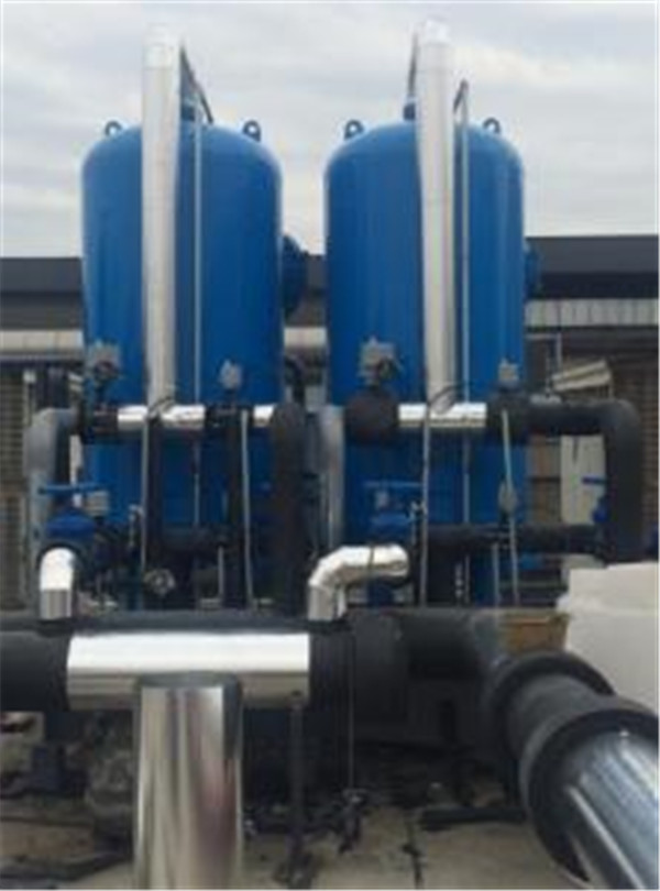 為充分利用原普通快濾池的過濾空間,保證一定的過濾深度,纖維束濾池氣路系統不另設豐型配氣管路,在池內原DN400mm的大阻力配水干管上開孔,直接與進池的DN150mm配氣干管焊接,使配氣管路系統與配水管路系統合二之一,既能氣水單洗,又能氣水混洗。